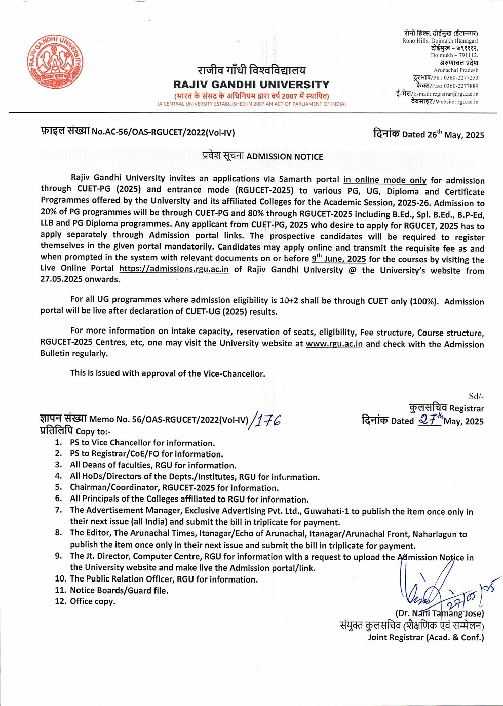 RGUCET ADMISSION NOTIFICATION 2025